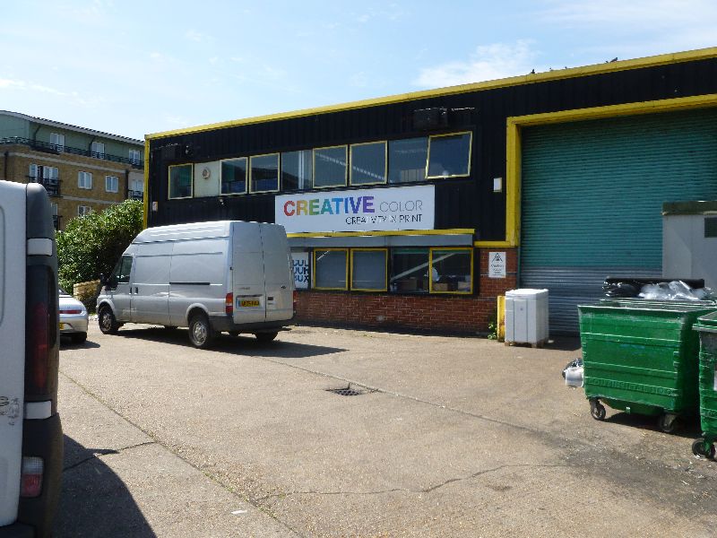 Modern warehouse approx 4790 sqft with 6.9m eave at highest point with office accommodation at first floor level approx 1150 sqft with parking at front, overlooking Limehouse Cut.