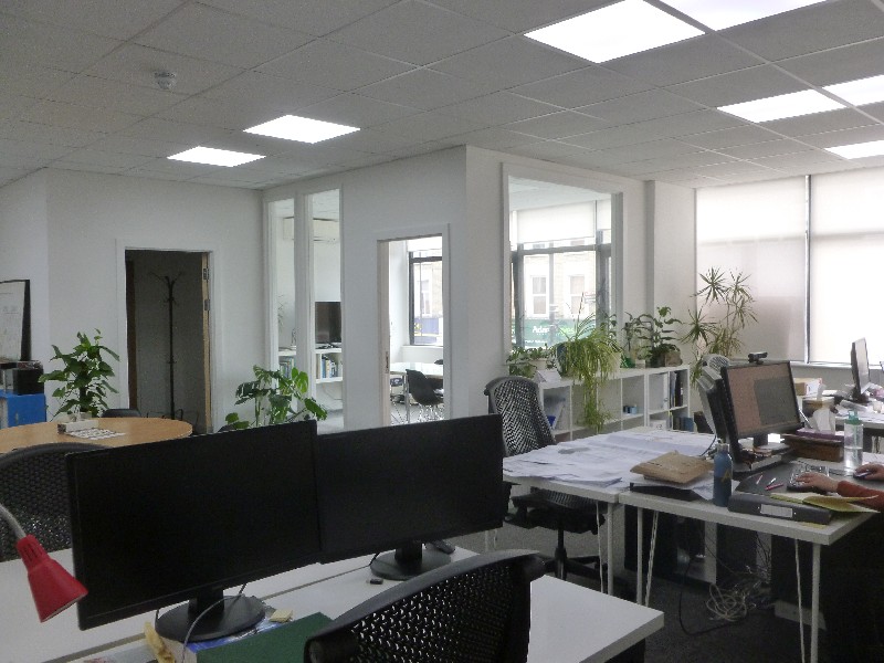 The premises are currently arranged as follows – large communal office space, two separate offices, kitchen and WC, shared access either from street or from rear car park area.